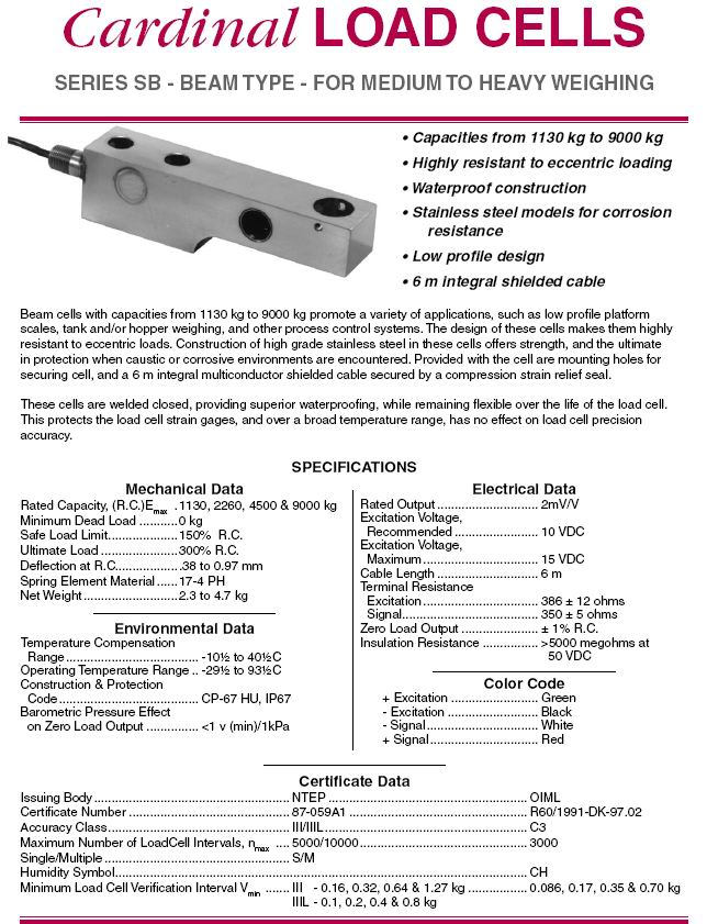 Cardinal SB 稱(chēng)重傳感器(load cells) 所有型號(hào): SB-2500S 1130KG SB-5000S 2260KG SB-10000S 4500KG SB-20000S 9000KG |
