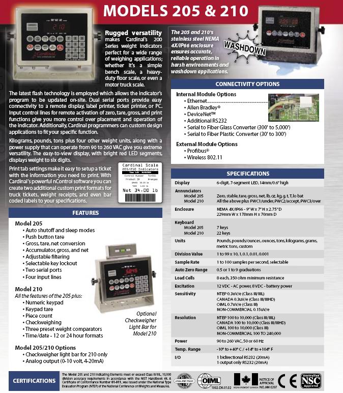 Cardinal 210 稱重顯示儀表(indicator)