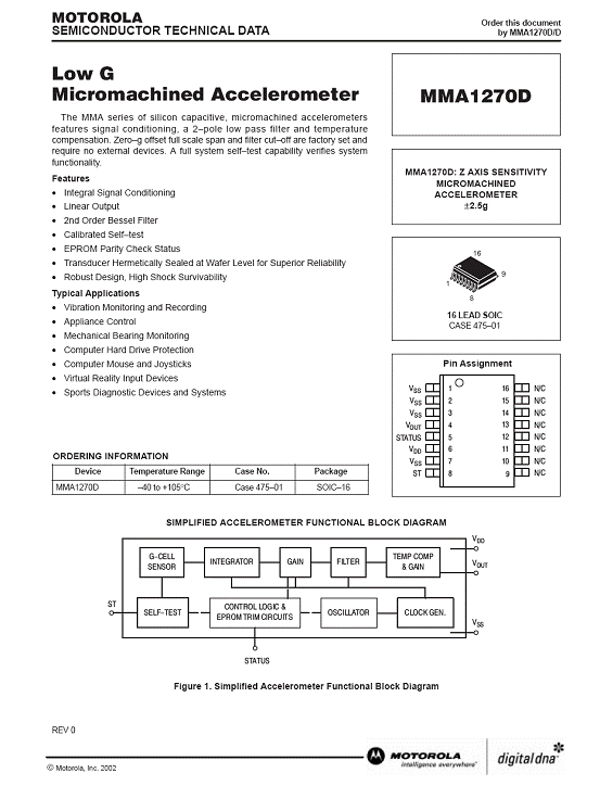 MMA1270D 加速度傳感器(accelerometer)