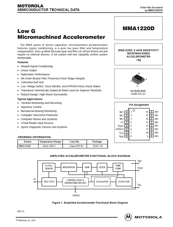 | 產(chǎn)品名稱:MMA1220D 加速度傳感器(accelerometer) |