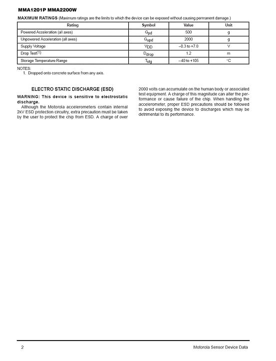 MMA1201P 加速度傳感器(accelerometer)