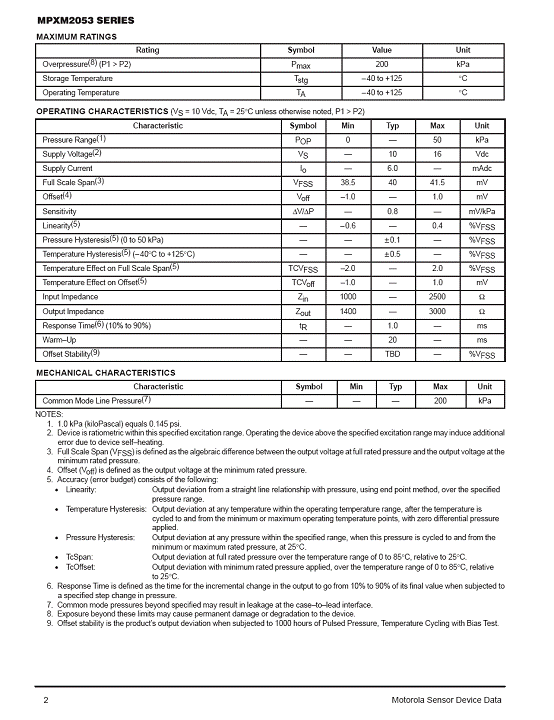 MPXM2053 氣壓傳感器(sensor)
