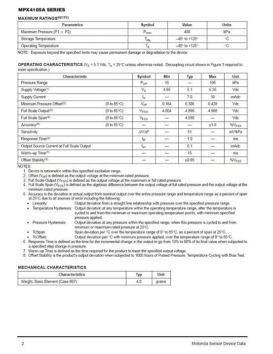 MPX4105A 氣壓傳感器(sensor)