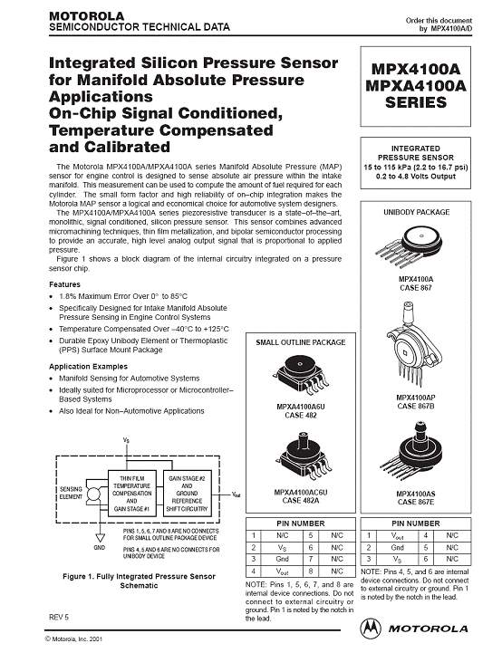 MPX4100A 氣壓傳感器(sensor)