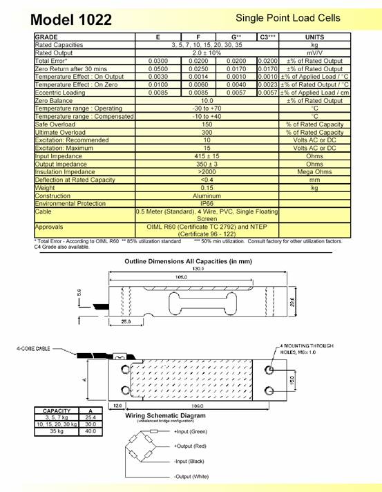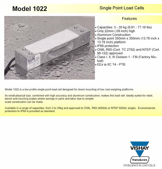 描述:1022是為低成本稱重秤設計的單點式傳感器。其緊湊的外形尺寸以及較低的成本適用于零售秤、計價秤和計數(shù)秤。