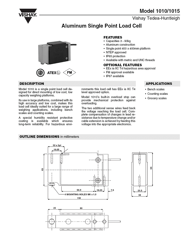 | 產(chǎn)品名稱(chēng):Tedea 1010 稱(chēng)重傳感器(load cells) |