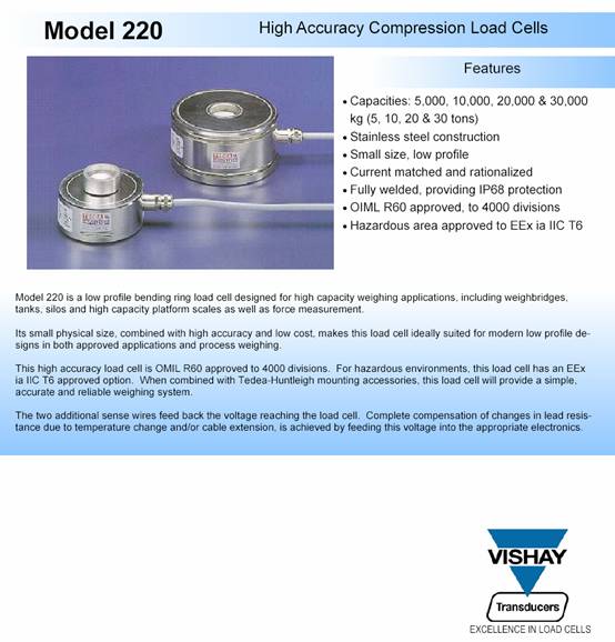 | 產(chǎn)品名稱:Tedea 220 稱重傳感器(load cells) |